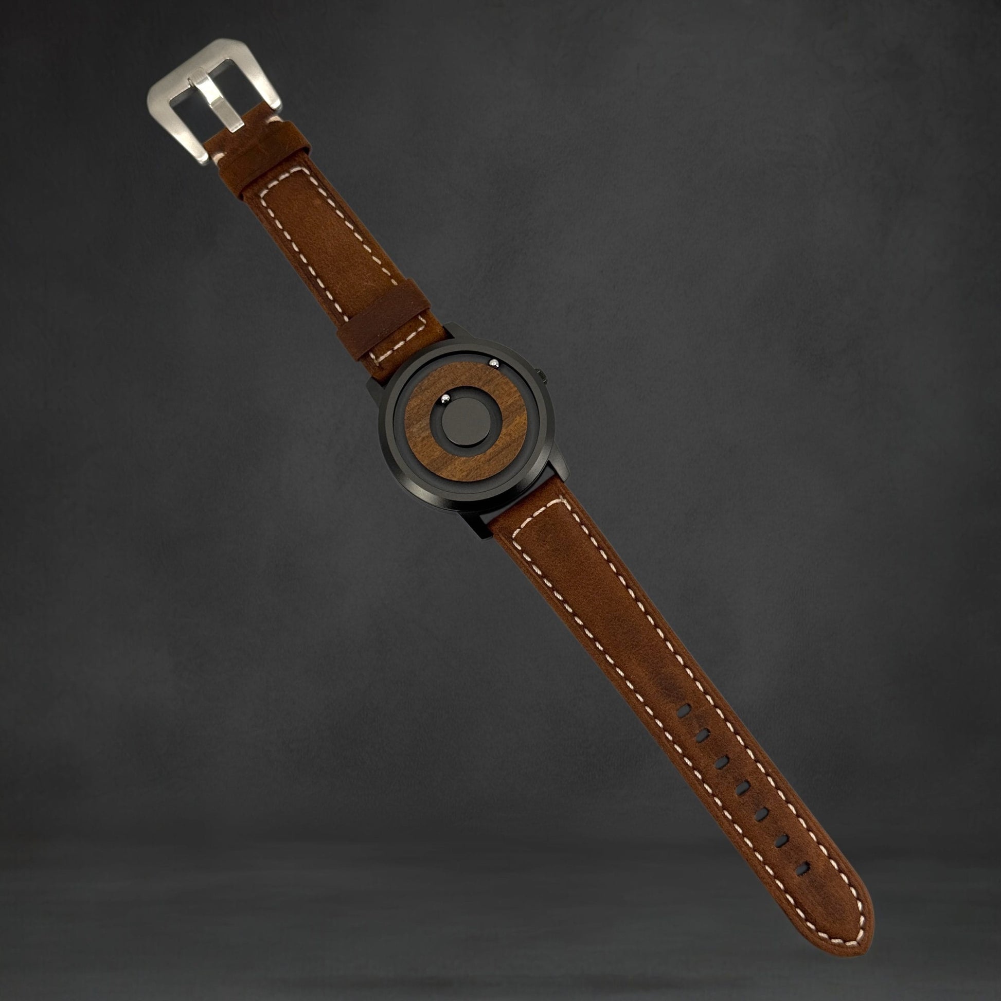 TimberWood Orbit™ – Magnetisch Unisex lederen Horloge zonder Wijzers