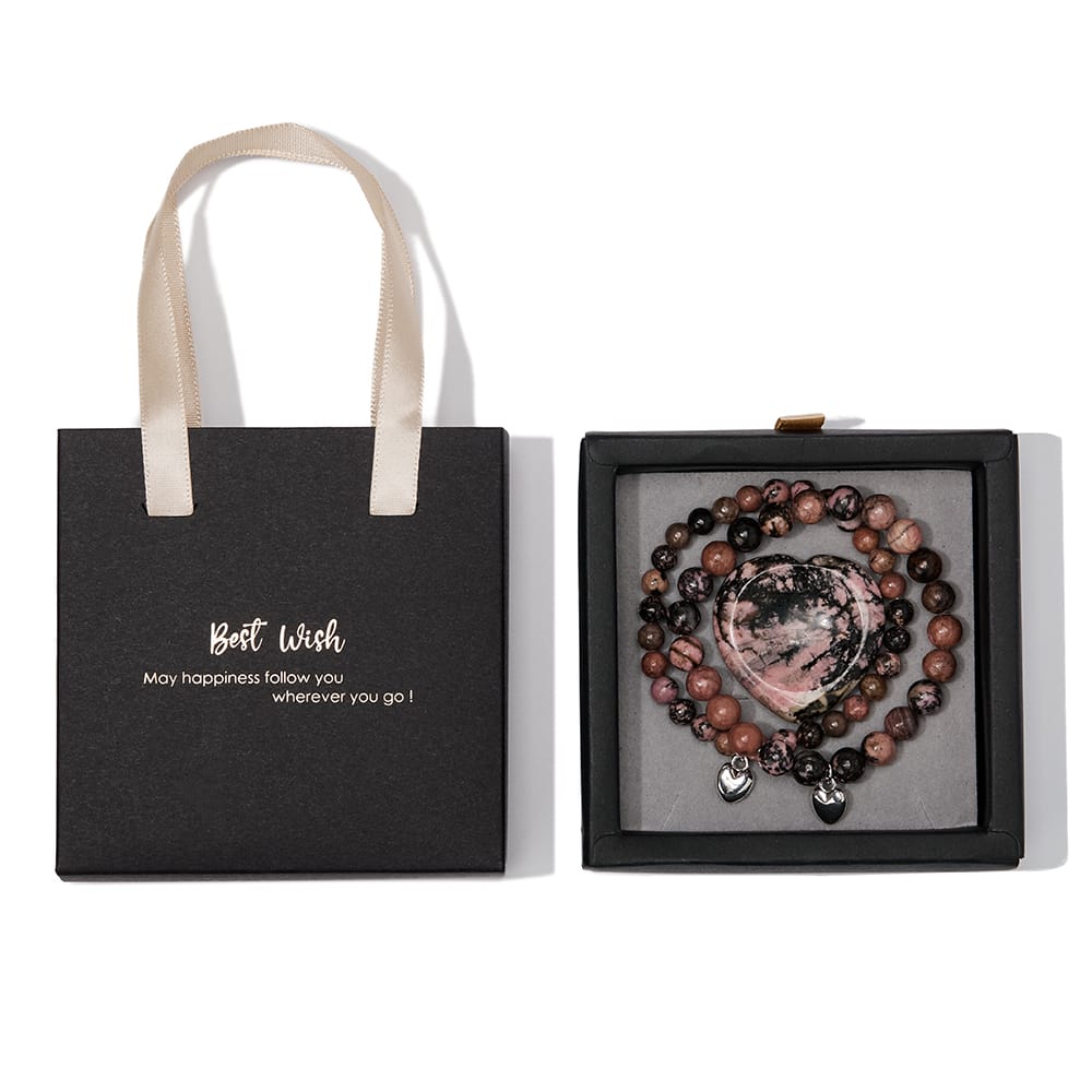 Rhodoniet Armbanden Set met Hartvormige Steen – Balans & Liefde